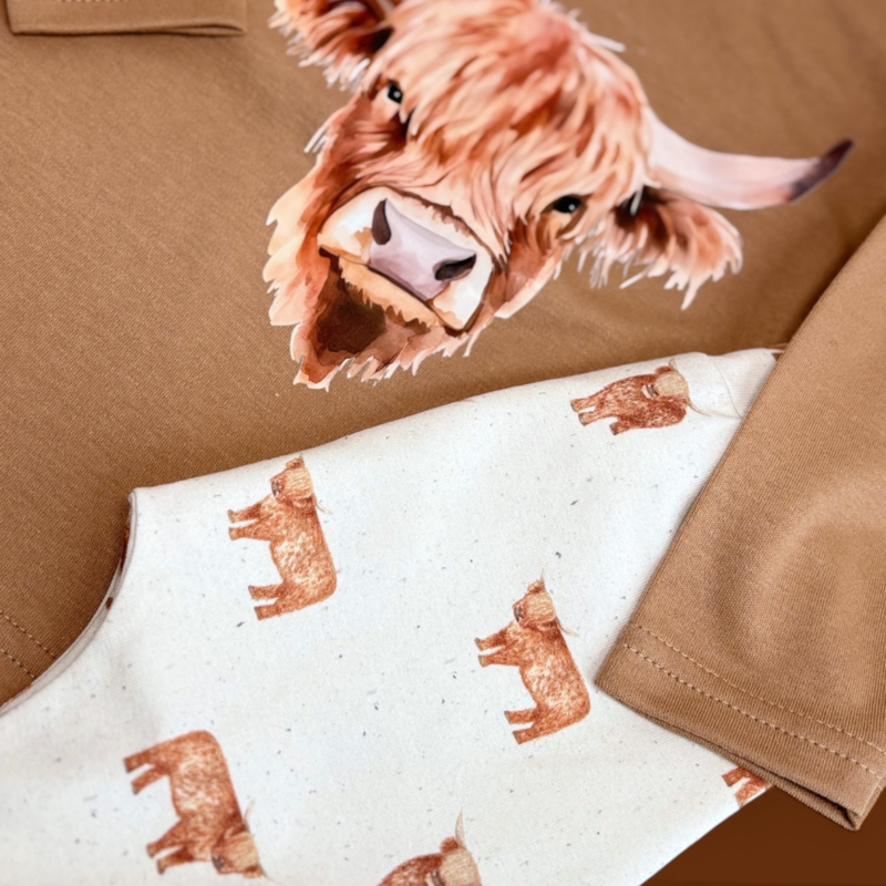 Longsleeve - Schotse HooglanderWauw! Dit shirtje is toch wel echt super stoer! De print van de schotse hooglander laat elk kleintje er schattig maar ook stoer uitzien. Is eventueel goed te combineren met onze exclusieve schotse hooglander broekjes.