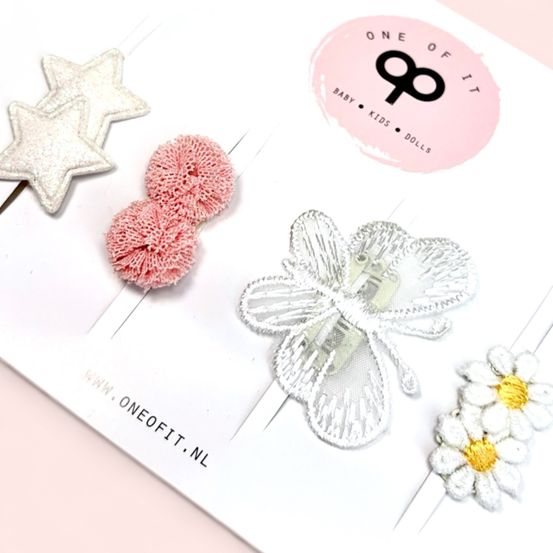 Maak de outfit van je kleintje af met deze prachtige haarspeldjes. Dit zijn de allerkleinste anti-slip speldjes die er bestaan en passen daarom al op de allereerste haartjes van je kleintje.