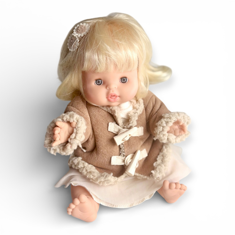 Suéde Jas MinikaneGaat Popje vaak mee naar buiten, dan is een lekkere warme jas natuurlijk wel fijn! Match je mooiste ouftig met dit leuke jasje met houtje touwtje knoopjes.