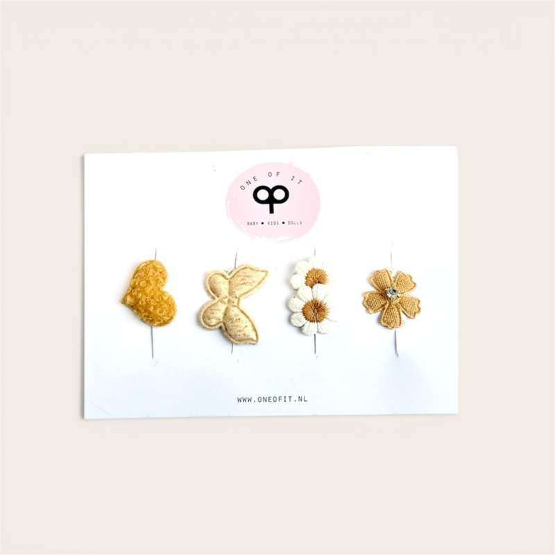 Maak de outfit van je kleintje af met deze prachtige haarspeldjes. Dit zijn de allerkleinste anti-slip speldjes die er bestaan en passen daarom al op de allereerste haartjes van je kleintje.