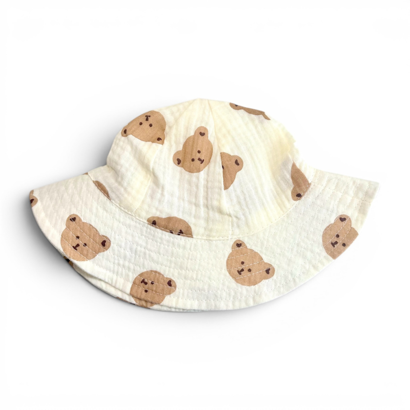 Maak de outfit van je kleintje af en bescherm haar tegen de zon met een lief hydrofiel zomerhoedje! Het hoedje heeft een print met beertjes en kunnen gedragen worden door jongens en meisjes.