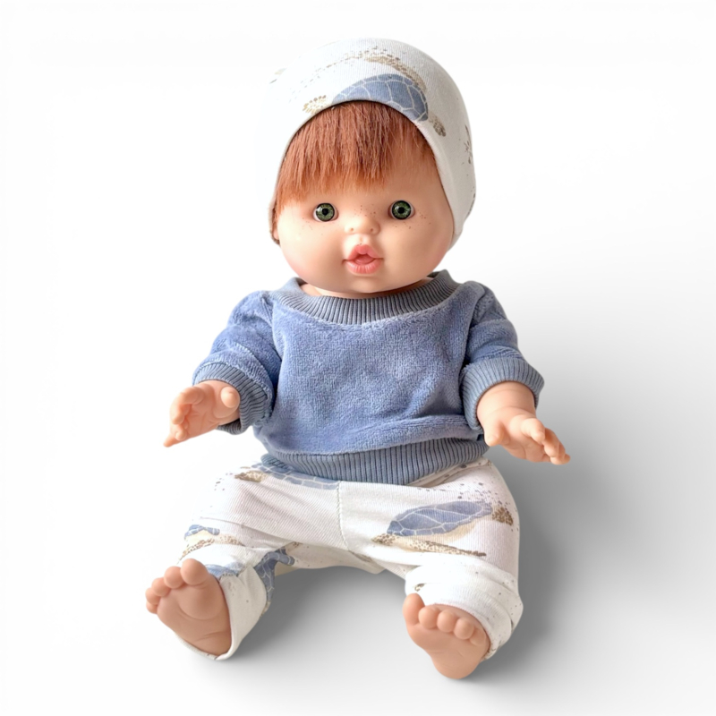 Poppenkleding setje - Sweater velvet Schildpad Mistiq Blue